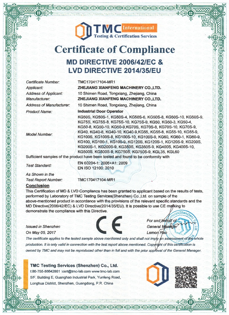 Zhejiang Xianfeng Machinery Co., Ltd. is a large enterprise founded in 1970 and has successfully got the ISO9001:2000, CE, CQC and EMC testing certificates, as the first professional manufacture of automatic gate operators in China, the company is specializing in designing and manufacturing gate operators, which are widely used for sliding gates, swing gates, industrial doors, rolling doors, garage doors, automatic barriers and toll system, etc. our products not only sell well in domestic market but also are widely exported to Southeast Asia, Europe& America, Africa, the Middle East, Australia and other countries and regions.